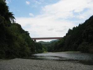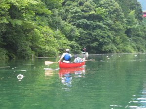 今日は待ちに待った三瀬谷ダム湖での、みやまびとミニカヌーオフ会である。みやまびととは、三重県海山町の自然とそこを流れる銚子川をこよなく愛する人たちの集まりで、今日の参加者は、てっちゃん、永さんと息子さんのakihiro君の総勢4名。待ちに待ったというのは、このミニオフ会をお願いしたのが私である事と一度台風の為、延期になっているからである。